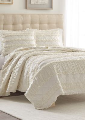 Ivory Quilt Set: The quilt set features hand tied closures on the shams.